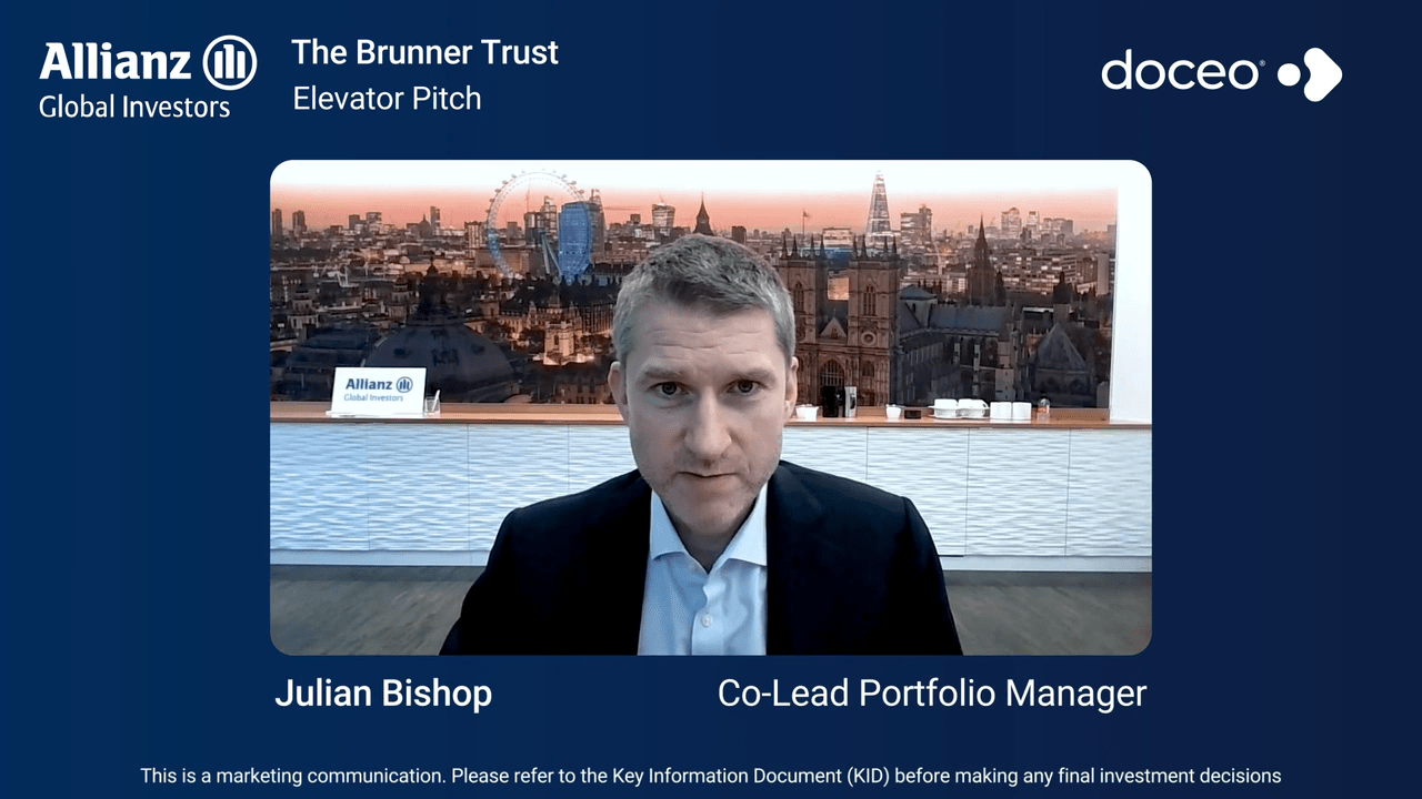 Doceo recently initiated coverage of The Brunner Investment Trust. Watch portfolio manager Julian Bishop as he gives a quick ‘elevator pitch’ on the trust and its objectives of delivering both growth and capital, along with a steady and growing dividend as part of Brunner’s ‘all-weather’ approach.